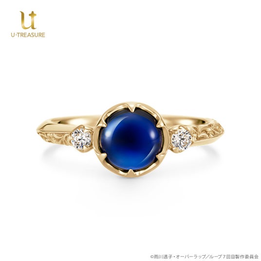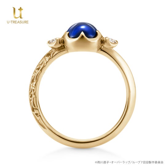 このたびの新作は、『アルノルト・ハイン』が主人公『リーシェ・イルムガルド・ヴェルツナー』に贈った婚約指輪を公式監修のもとデザイン設定を参考に忠実に再現したリング(指輪)です。センターストーンは『アルノルト』の青い瞳の色を表現するため、今回オリジナルの合成サファイアの作製を行いました。リングのケースまでデザイン設定に沿った特別な逸品です。