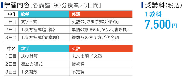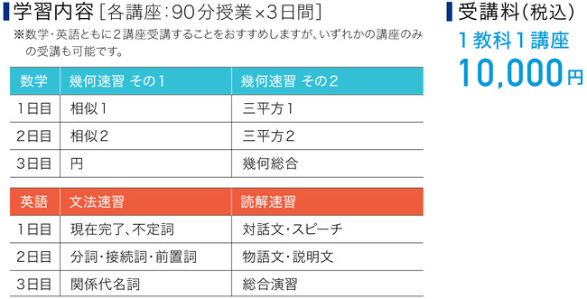 ※数学は両講座とも事前に配信する教材で予習したうえでご参加いただきます。