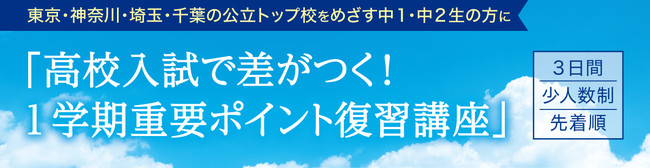 ▼中1生・中2生対象「高校入試で差がつく!1学期重要ポイント復習講座」のお申し込み・お問い合わせはこちら