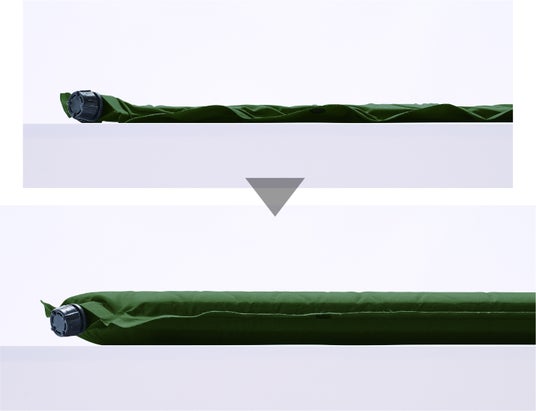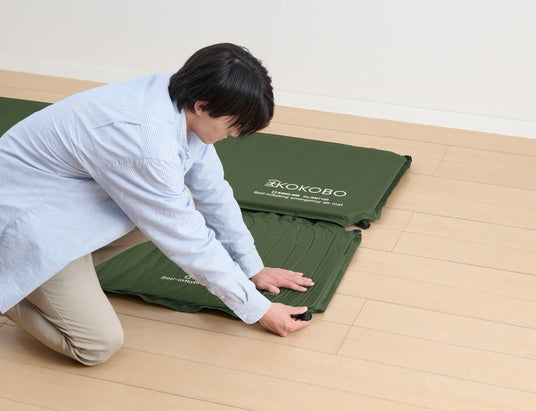 バルブを開けるだけで誰でも簡単に設営できる、自動膨張式のマット。厚さ約5cmまで膨らむため、振動や底冷えを軽減し、避難所での睡眠や休息を快適にサポートします。