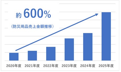 当社では2008年より防災用品の発売を開始し、防災用品カテゴリの売上は2020年度から2025年度にかけて、約600%の成長を記録しており、堅調に推移しています。