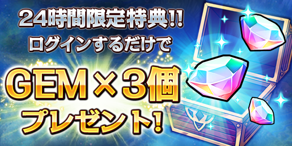 上記期間内にゲームにログインするだけで「GEM」×3個が手に入ります。
