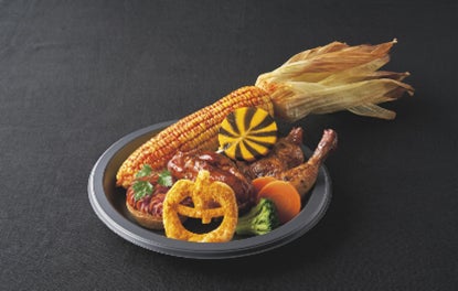 映画のハロウィーン・パーティのシーンにも登場した、ロリポップキャンディを使用。ポークリブ、ローストチキン(ハーフ)の豪華な内容に加え、ジャック・オ・ランタン型パイなども含まれた、特別なプレートです。