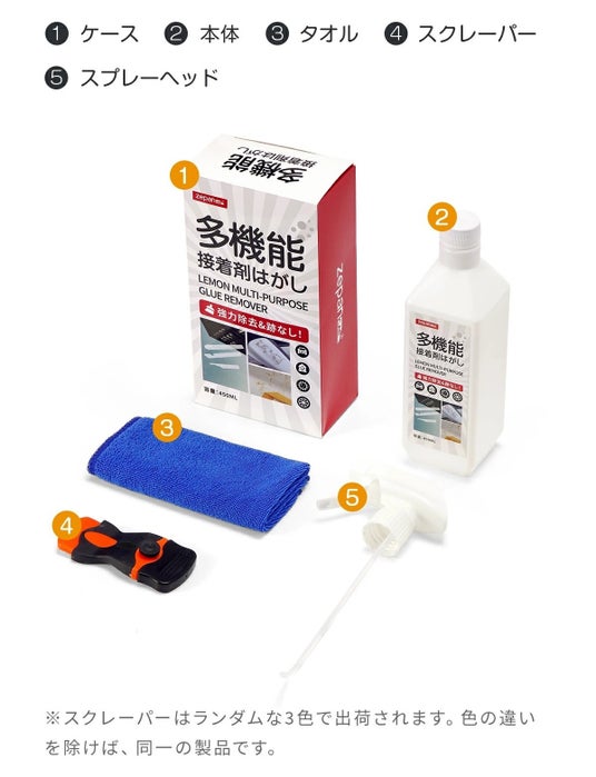専用スクレーパー&タオル付きはがしやすさを追求した専用スクレーパーで、テープやステッカーの除去がより簡単に。