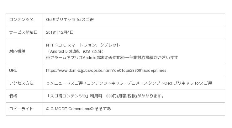 ※『Get!!プリキャラ forスゴ得』はNTTドコモのみのサービスです