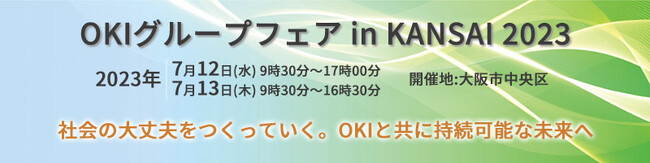 OKIは、2023年7月12日(水)、7月13日(木)「OKIグループフェア in KANSAI 2023」をサンライズビル(大阪市中央区)にて開催します。