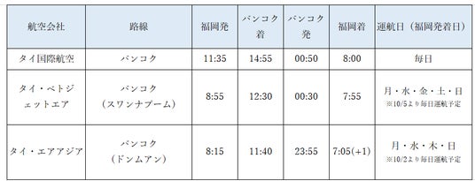 福岡=タイ(バンコク)線運航スケジュール(9月1日時点)