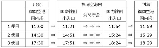 →国際線側出入口(セキュリティ検査)→福岡空港内→消防庁舎→国内線側出入口