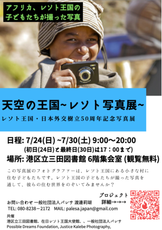 そして武井雅昭・港区長は「日本では夏休みになっていて、多くのこども達が自由研究や勉強をしに三田図書館に通っています。レソト王国のこども達が撮影した作品には、誇りや喜びが表現されていると思います。日本のこども達が目にすることで、改めて愛着がわくことや、交流が深まることを期待しています」と話した。