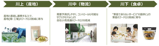 当社は、「サステナブルリテール」(持続可能型小売業)として、サブスクリプションモデルによる受注予測や、ふぞろい品の積極活用、家庭での食品廃棄が削減できるミールキットなどを通じ、畑から食卓まで、サプライチェーン全体で食品ロスゼロを目指しています。