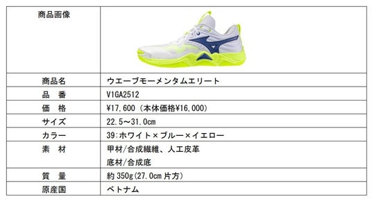 今回の契約により、佐藤淑乃選手はクッション性と安定性を追求したバレーボールシューズ「ウエーブモーメンタムエリート」を着用します。また、ミズノバレーボール品やトレーニング品に関する改良や開発に対するアドバイスをもらうとともに、宣伝・広報活動にも協力いただきます。