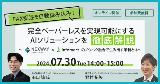■7/30(火)共催セミナー「FAX受注を自動読み込み!完全ペーパーレスを実現可能にするAIソリューションを徹底解説」を開催