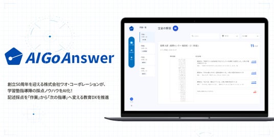 株式会社ワオ・コーポレーション(本社:大阪府大阪市、代表取締役社長:池森英雄)と、その子会社である株式会社ワオテック(本社:大阪府大阪市、CEO:池森英雄)はこのたび、国語記述問題AI自動採点システム「AI Go Answer(エーアイゴーアンサー)」を共同開発しました。