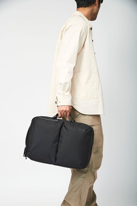 縦横どちらでも対応可能なブリーフスタイルと、バックパックとしても使えるデザインで、