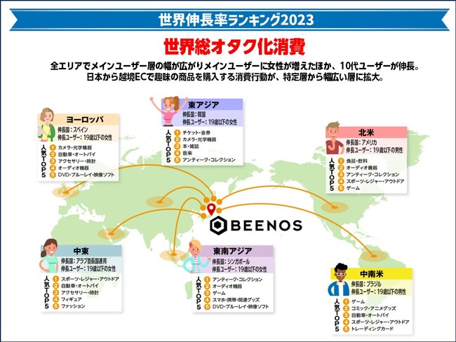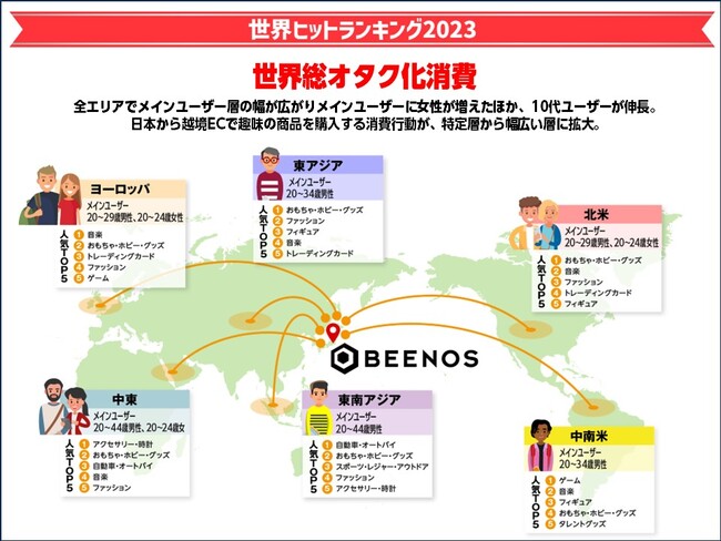 BEENOS 株式会社(東証プライム:3328、本社:東京都品川区、代表取締役:直井 聖太、以下BEENOS)は、「BEENOS 越境EC ヒットランキング 2023」を発表しました。「BEENOS 越境EC ヒットランキング 2023」は、越境EC支援実績5,000件以上のBEENOSグループの購買データより2023年の消費傾向を振り返り、海外でヒットした商品カテゴリや消費傾向を紹介するランキングです。