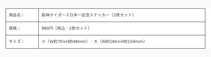 阪神タイガースのSMBC日本シリーズ優勝、「日本一」を記念した限定グッズの、