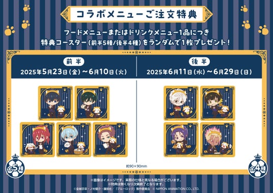 コラボメニューご注文1品ごとにコースターをランダムで1枚プレゼント!