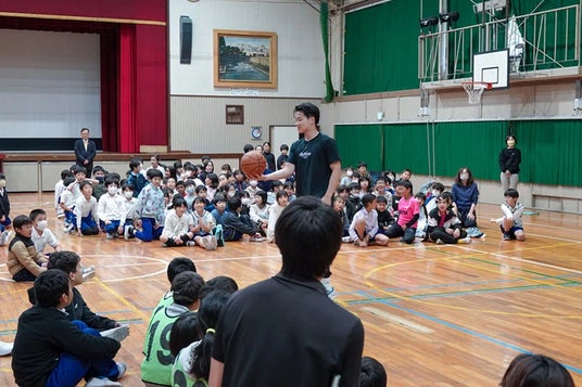 試合形式では平選手のダンクで大盛り上がり!その後小学4、5年生259人へ平選手から夢についてお話しさせていただき、児童の皆さんは真剣な表情で平選手の話に耳を傾けていました。