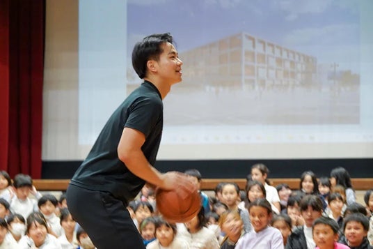 また、将来バスケットボール選手になりたい!という夢を持つ児童に、「将来は同じコートに立とう!」と熱いメッセージをお伝えしました。