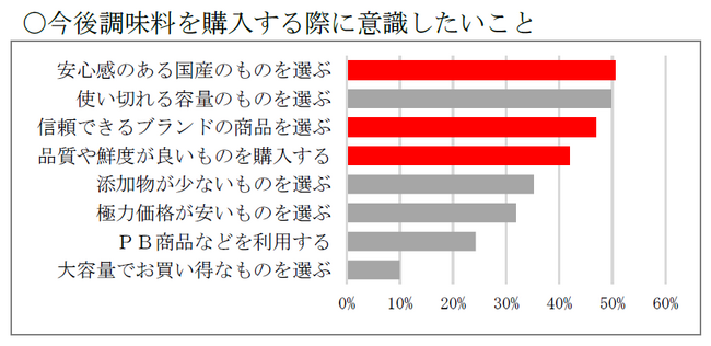 調味料の購入に対しては、「価格・コストパフォーマンス」を重視する層と、「本物志向・こだわり」を意識する層の二極化や、安全・安心を充足する「国産素材」への期待の高まりといった価値観の多様化が進むことが予測されます。冬期:静岡県産、春夏期:長野県産に分けて出荷。