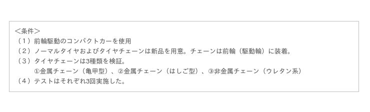 [資料編] https://jaf.or.jp/common/safety-drive/car-learning/user-test/snow/tire-chain-turning-braking