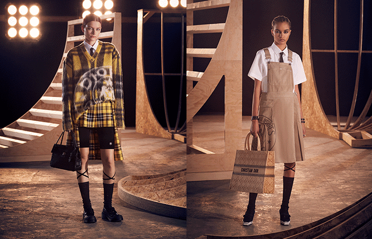 マリア・グラツィア・キウリにとって、それぞれのコレクションはディオールの歴史と現代の世界との対話を確立し、視覚的な詩を書く機会なのです。彼女は、ムッシュ ディオールの成功に貢献した女性たち、つまり、クリスチャン・ディオールの妹カトリーヌの生涯を追った著書『Miss Dior*』でジャスティン・ピカディが賞賛した真の創造力を持つ女性たちにスポットを当てたいと考えました。マリア・グラツィア・キウリは、ディオール一族の象徴であるジュートバッグを、L'union fait la force(「団結による力」)をモットーとする「ハウス オブ ディオールの女子学生クラブ」という新しいシスターフッド(姉妹関係)のシンボルに見立て、変身させたのです。今回のディオール フォール 2022 ラインのマキシム(原理原則)は、共同で創造するプロセスへのオマージュであり、ショーの主要なインスピレーション源であるユニフォームを強調するものです。これらの服装は、差異を無くすことで集団に溶け込むことや、逆に流用やカスタマイズにより際立たせることができます。その結果、大胆なシルエットが生まれ、交わりや分かち合いといった難解な概念を表現することが可能になったのです。