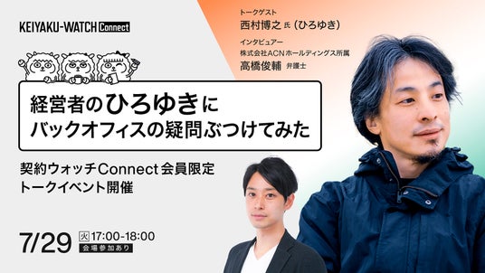 株式会社LegalOn Technologies(本社:東京都渋谷区、代表:代表取締役 執行役員・CEO 角田 望)が運営する、契約学習を支援するメディア「契約ウォッチ」(https://keiyaku-watch.jp/ )で、法務や人事労務、総務など、全てのコーポレート領域の実務者がつながり、学び合うことができる交流コミュニティ「契約ウォッチConnect」を7月10日より開始しました。本コミュニティに加入することで、お互いの知見を共有しながら契約業務における実践的な気づきと、組織にとってより良い判断力を得ることができます。