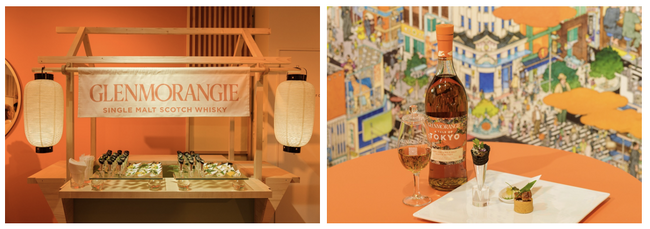 オレンジ色を基調とした会場に、のれんや提灯など日本の伝統的な要素が散りばめられ、「グレンモーレンジィ トーキョー」らしさが表現された空間でした。限定ボトルをデザインした山口晃さんの原画も思わずじっくり見てしまい世界観に引き込まれました。今日初めて「グレンモーレンジィ トーキョー」を飲んだのですが、香りも味わいもフルティーな印象を抱きました。秋が近づいてきた今の季節にもぴったりだと思うので、友達と一緒に外で自然を感じながら楽しみたいなと思いました。