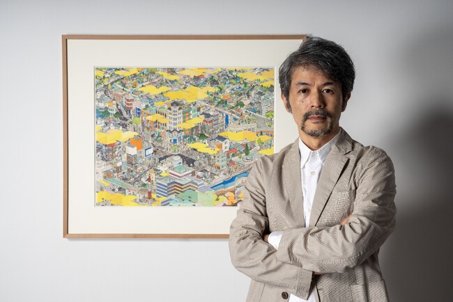 1969年東京生まれ。群馬県で育ち、1996年東京藝術大学大学院美術研究科油画専攻修了。都市や戦場の俯瞰図を描くことで知られ、伝統的な日本スタイルの油絵技法に加え、彫刻、日本の芸術形態である漫画、インスタレーションアートなど様々なメディアを駆使します。山口氏の幅広い活動は、長年にわたって日本中で高く評価されてきました。故郷・桐生で初の芸術大使に就任し、日本美術を独自に分析した著書『へんな日本美術史』は2013年