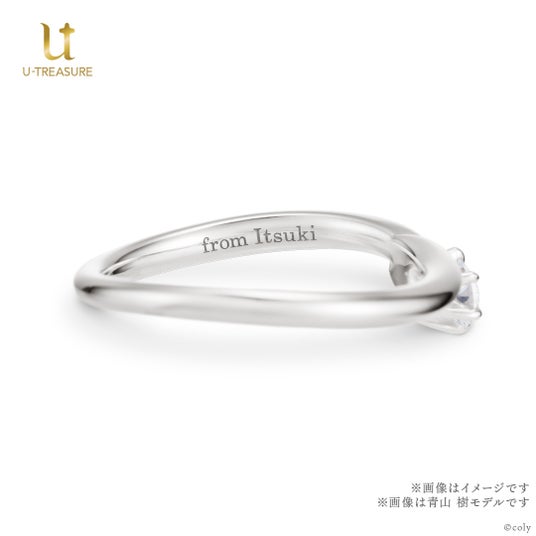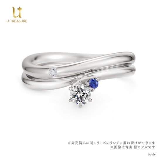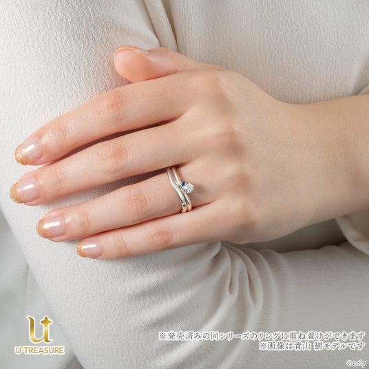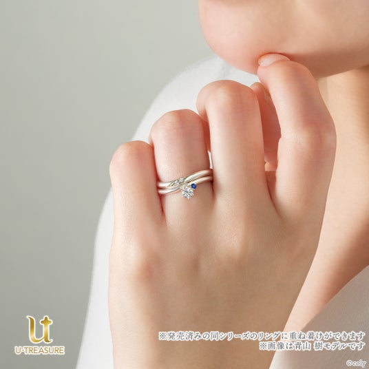 このたびの新作は、ウェーブラインのデザインにセンターストーン・サイドストーンをあしらったリング(指輪)です。内側には26人の中から選んだキャラクターの名前を刻印。発売済みの同シリーズのリングに重ね着けができるデザインです。