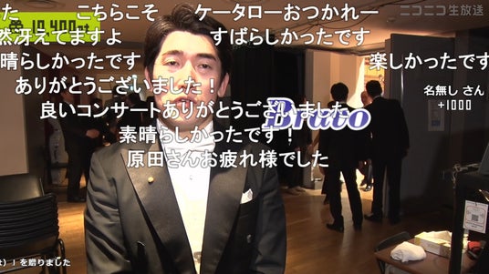また、ニコ響ならではの楽しみ方として終演後や休憩時間中のインタビューでコメントが盛り上がります。指揮者やソリスト、ソロで活躍した団員の感想を聞けたり、入団や退団するメンバーの挨拶を見ることができたりと、さまざまなインタビューを通して東京交響楽団の団員たちを身近に感じられるコーナーになっており、2025年2月22日の公演では、演奏中に出ていた視聴者の疑問を、指揮:原田慶太楼が解説する場面があり、コメントが盛り上がりました。