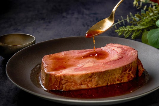 低温でローストして旨みを凝縮させた逸品です。 するっとナイフが入るほどの驚きの柔らかさと、肉本来が持つしっかりとした繊維質やジューシーさを楽しめます。添えられた深い味わいのオ・ジュソースがお肉の味を引き立てます。 お好みでホースラディッシュと「ロウリーズ・シーズンド・ソルト」を付けてお楽しみください。