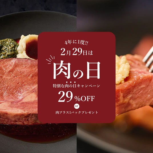 ロウリーズでは、4年に一度の肉の日(2月29日)を記念し、2024年2月26日(月)10:00~29日(木)までの間、公式オンラインショップの3商品を29%OFFで販売します。1パウンド(約450g)の厚切りプライムリブが入った「プライムリブセット」やお店でも人気のアカンパニメンツ(付け合わせ)3種が付いた「ロウリーズセット」、ご自宅でロウリーズのコースを楽しめる「クラシックセット」が対象となります。滅多にない割引率となるため、ご注文が殺到することが予想されます。大切な方への贈り物やホームパーティー、自分へのご褒美として、この機会にご利用ください。