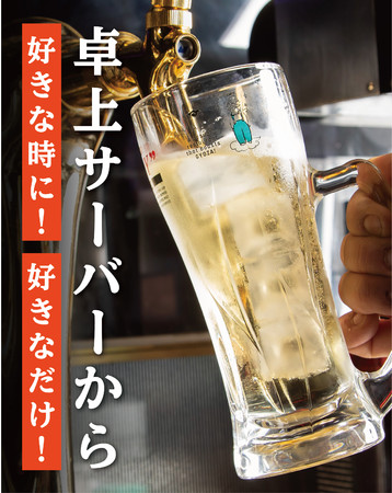 各テーブルに設置したセルフハイボールタワーは、60分550円からの価格設定で、お好きな量を存分に楽しめます。*