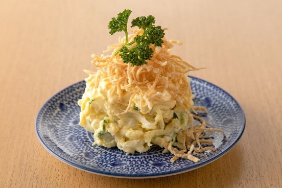 北海道産男爵の自然な甘さのポテトサラダに、ゆで玉子たっぷりのタルタルソースをプラス