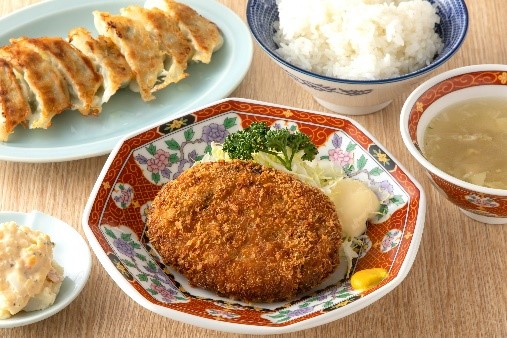 その自慢の“自家製焼き餃子”の餡は 、豚の粗挽き肉とキャベツ、白菜、長ネギ、ニラ、にんにく、しょうがを絶妙なバランスで配合、食材の食感を残しながらもジューシーな味わいを実現しました。