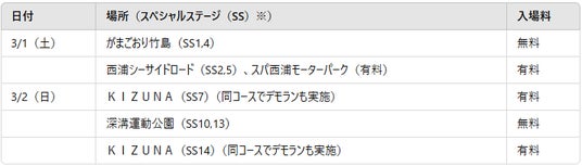 ※スペシャルステージ(SS):公道等を封鎖し、競技車両がタイムアタックを行う競技区間