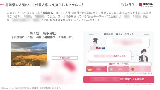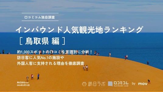 業界最大級のインバウンドビジネスメディア「訪日ラボ」及び AI店舗支援SaaS「口コミコム」を運営する株式会社mov(代表取締役:渡邊 誠、本社:東京都渋谷区、以下mov)は、各都道府県の観光スポットに寄せられた最新の口コミデータから、独自の『インバウンド人気観光地ランキング』を発表しました。