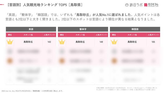 - 調査対象:訪日ラボが独自に選出した鳥取県の観光スポット 990箇所