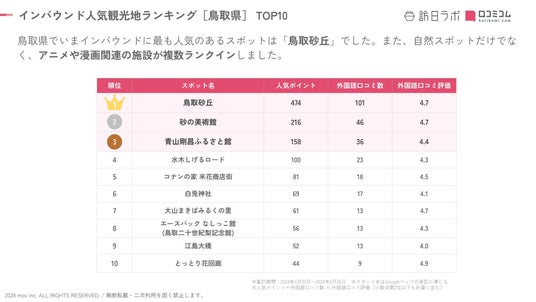 インバウンド人気観光ランキング[鳥取県編] TOP10