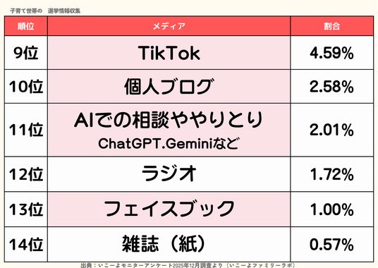 子育て世帯の選挙意思決定は、テレビを中心にメディア二刀流、三刀流へ?