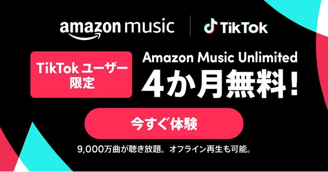 ・キャンペーン参加方法:キャンペーンページ(https://snssdk1180.onelink.me/BAuo/amazonmusicunlimitedforTikTok)から申し込み