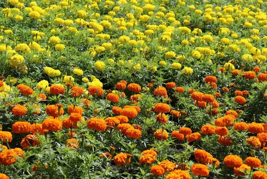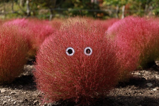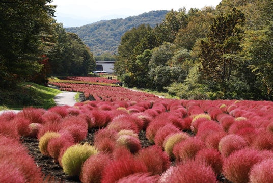 秋の斜面を彩る1万株のコキアと園芸種