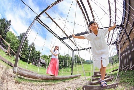 園内はペット同伴可能となっており、通路が舗装されていることに加え広々としたドッグランも完備されているため、 高原の爽やかな空気の中、安心して愛犬と一緒に園内を巡ることができます。中腹には、トランポリンやアスレチックなどが設置された「たんばランド」があり、お子様をはじめご家族みんなでお楽しみいただけます。