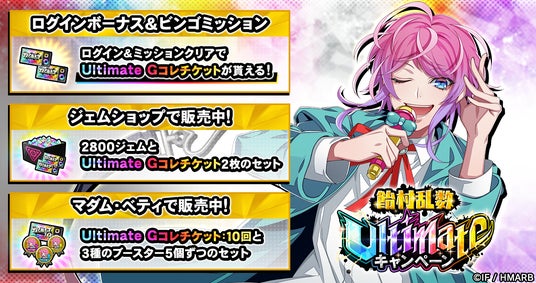 Ultimateカード「SSR【EDGEOUT】飴村乱数」を獲得することができるGコレクトや、ビンゴミッション・ログインボーナスを開催しています。