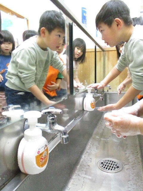 寄贈されたキレイキレイ薬用泡ハンドソープを活用する豊橋市の保育園