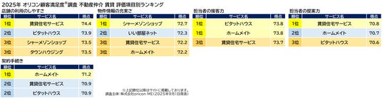 『不動産仲介 賃貸』総合ランキング(オリコン顧客満足度)