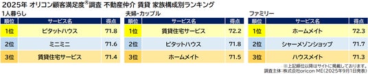 『不動産仲介 賃貸』_家族構成別ランキング(オリコン顧客満足度)