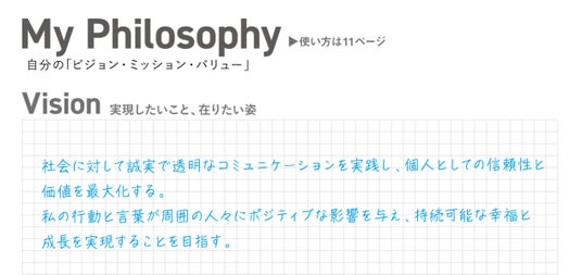 ・自分の「ビジョン・ミッション・バリュー」を書く「My Philosophy」