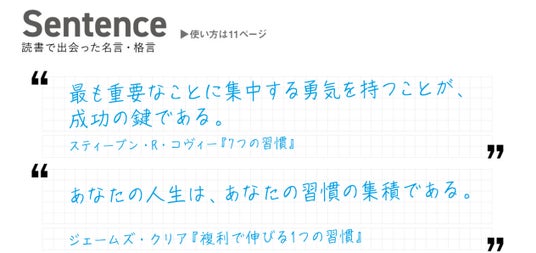 手帳の流れに沿って行動していくことで、自然と本の内容が身につきます。